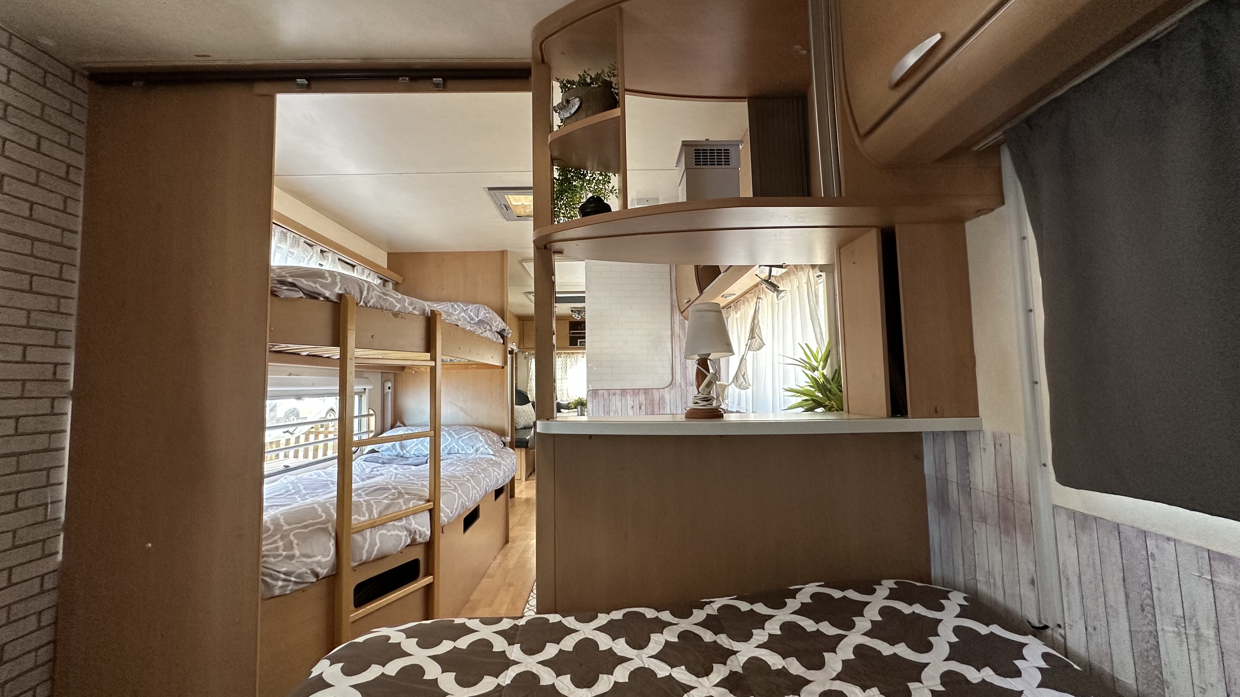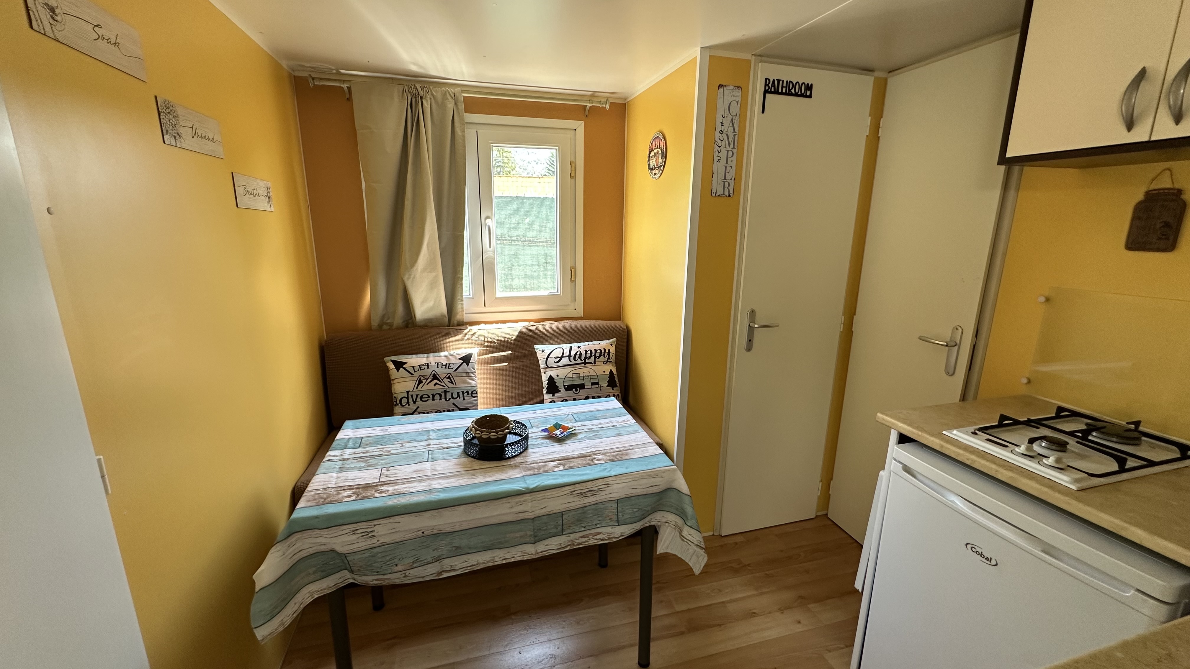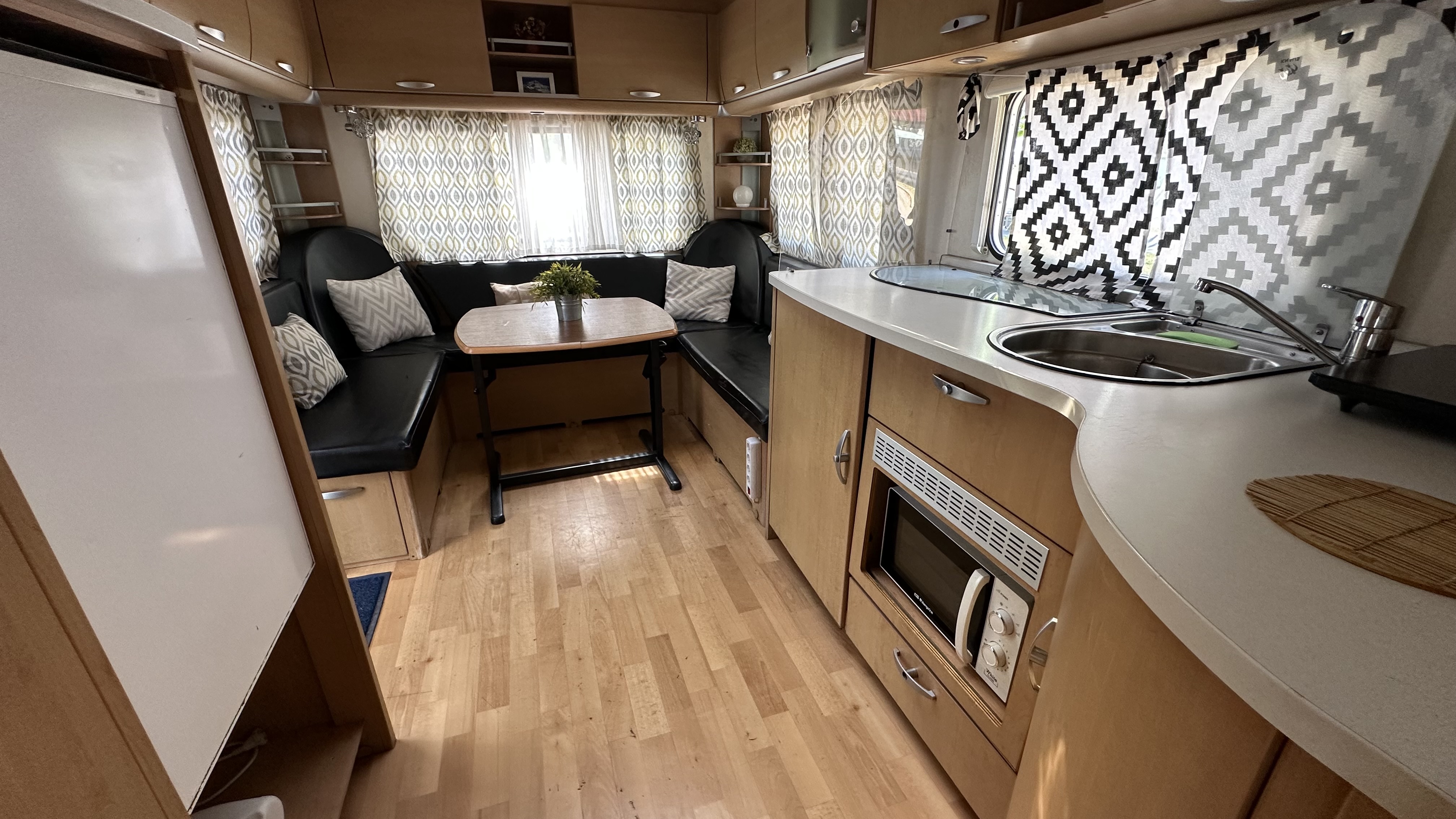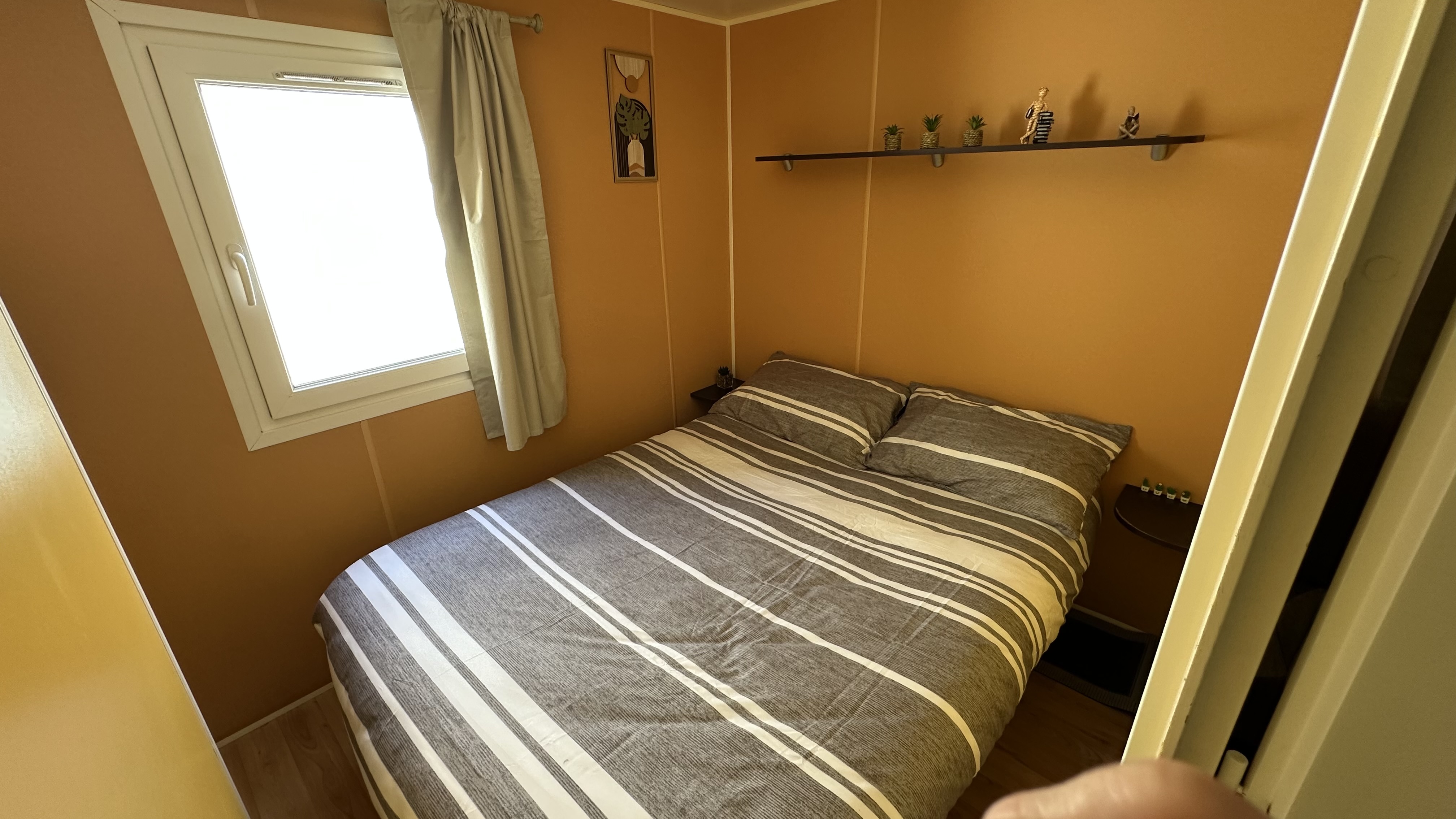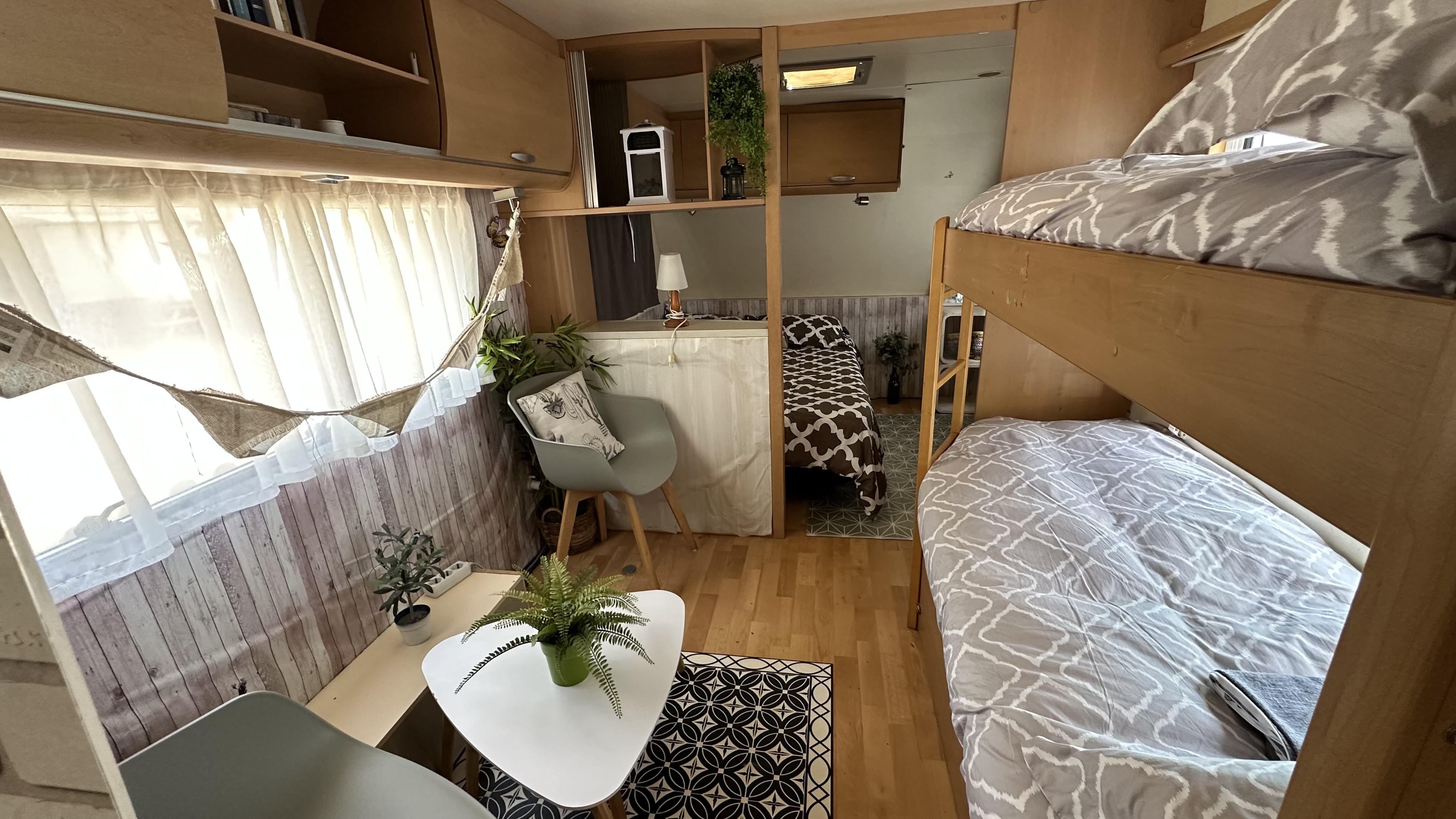Nuestra mobilhome cuenta con una cama de matrimonio y un sofá cama doble (sin separación por habitaciones).
